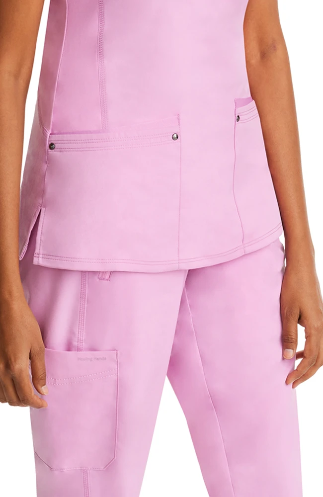 The Purple Label by Healing Hands Women’s Juliet V-Neck Yoga Solid Scrub Top will help you feel at ease throughout a busy work day. Stretchy side panels contour your figure for a flattering fit, while enhancing your range of movement.