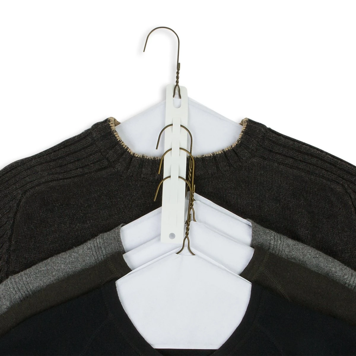 Create less bulk on your racks with our plastic hanger strip. It prevents bunching of garments. One hanger hole has 5 slots. Measures 8 1/4″. 5 slots plus top and bottom hanger holeAllows you to hang multiple items togetherReusableMade from plastic