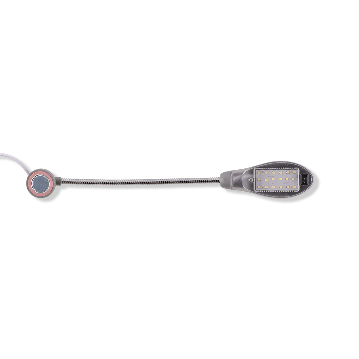 LED lamp features 18 LED lights that cast a bright white across the target area and a magnetic base with a 7″ flexible gooseneck attached to a 5″ LED head. The LED panel uses circuit on board (COB) technology which allows for bright effiecient lighting using multiple LED chips to create a single panel. The magnetic base is housed in rubber to prevent vibration of the light when mounted to machinery. Lamp is powered by an AC cord, with the on/off switch mounted to the lamp head for easy access. Gooseneck designMagnetic attachmentEco-friendly