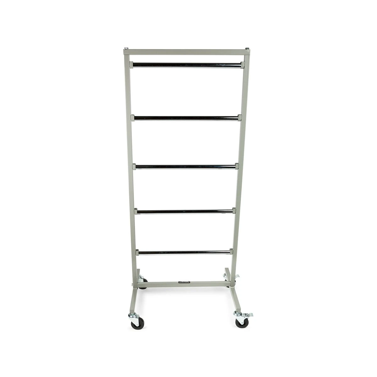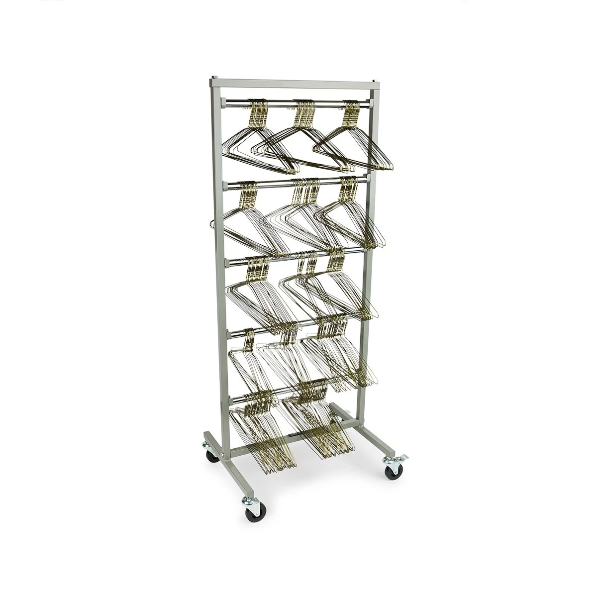 The perfect storage rack for your metal hangers. It sits on 4 swivel wheels and is light-weight and easy to move around. Includes 5 bars equally spaced to fit 60+ hangers per bar. All rack levels are removable. Measures 60″ x 24″ x 18″. Keeps hangers neat and organizedEasy to move aroundHolds 5 levels of hangersRack levels are removable